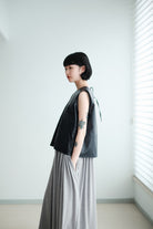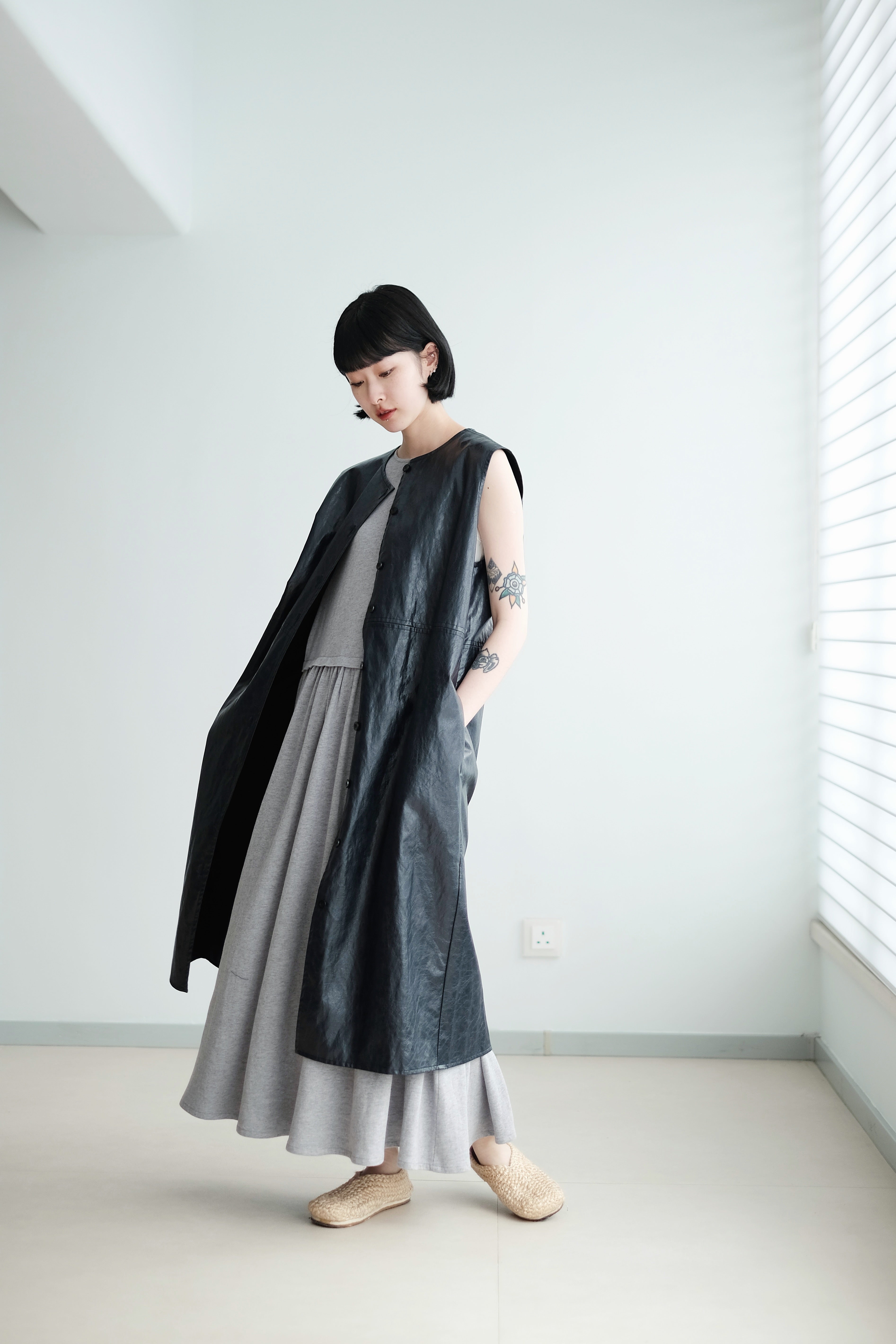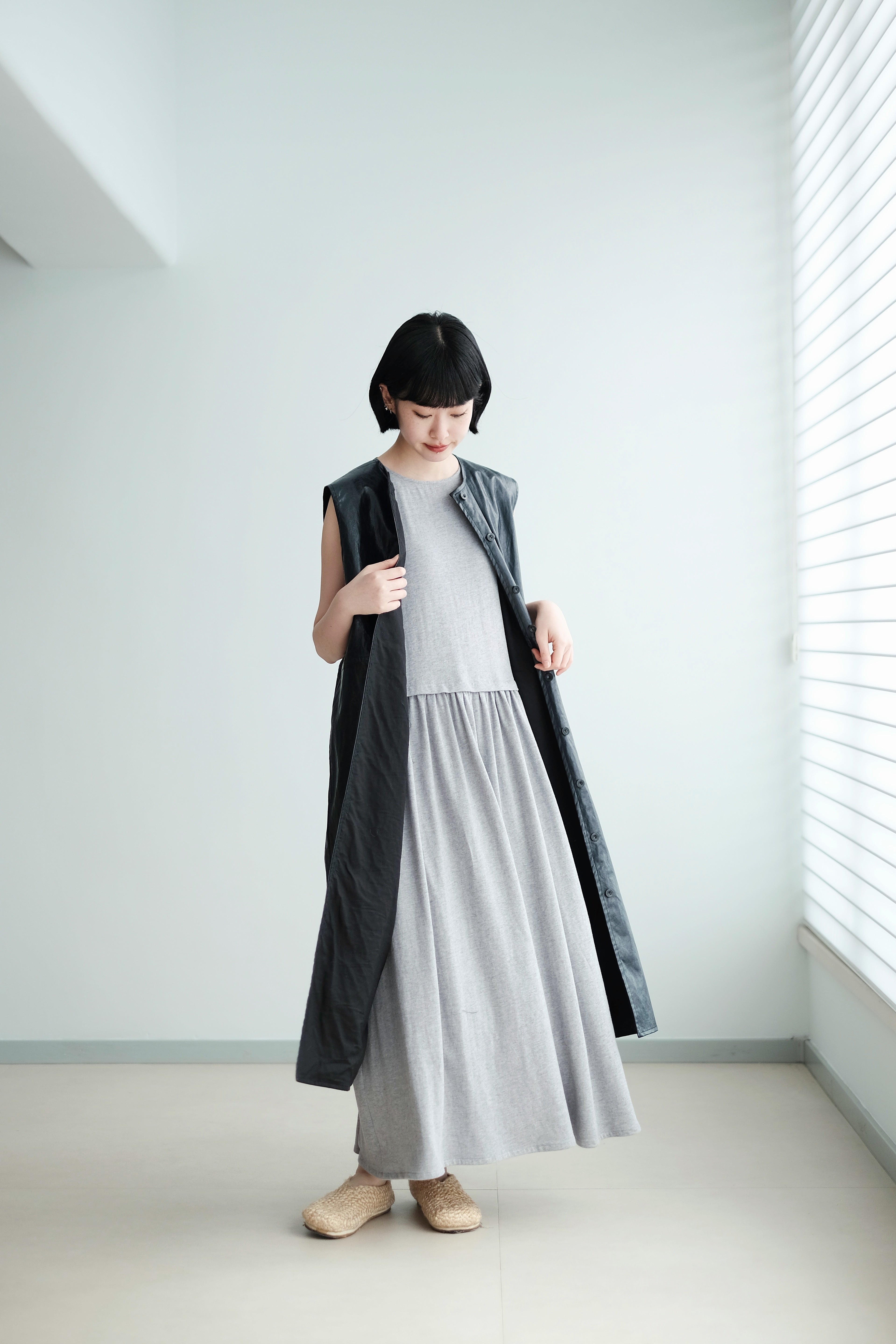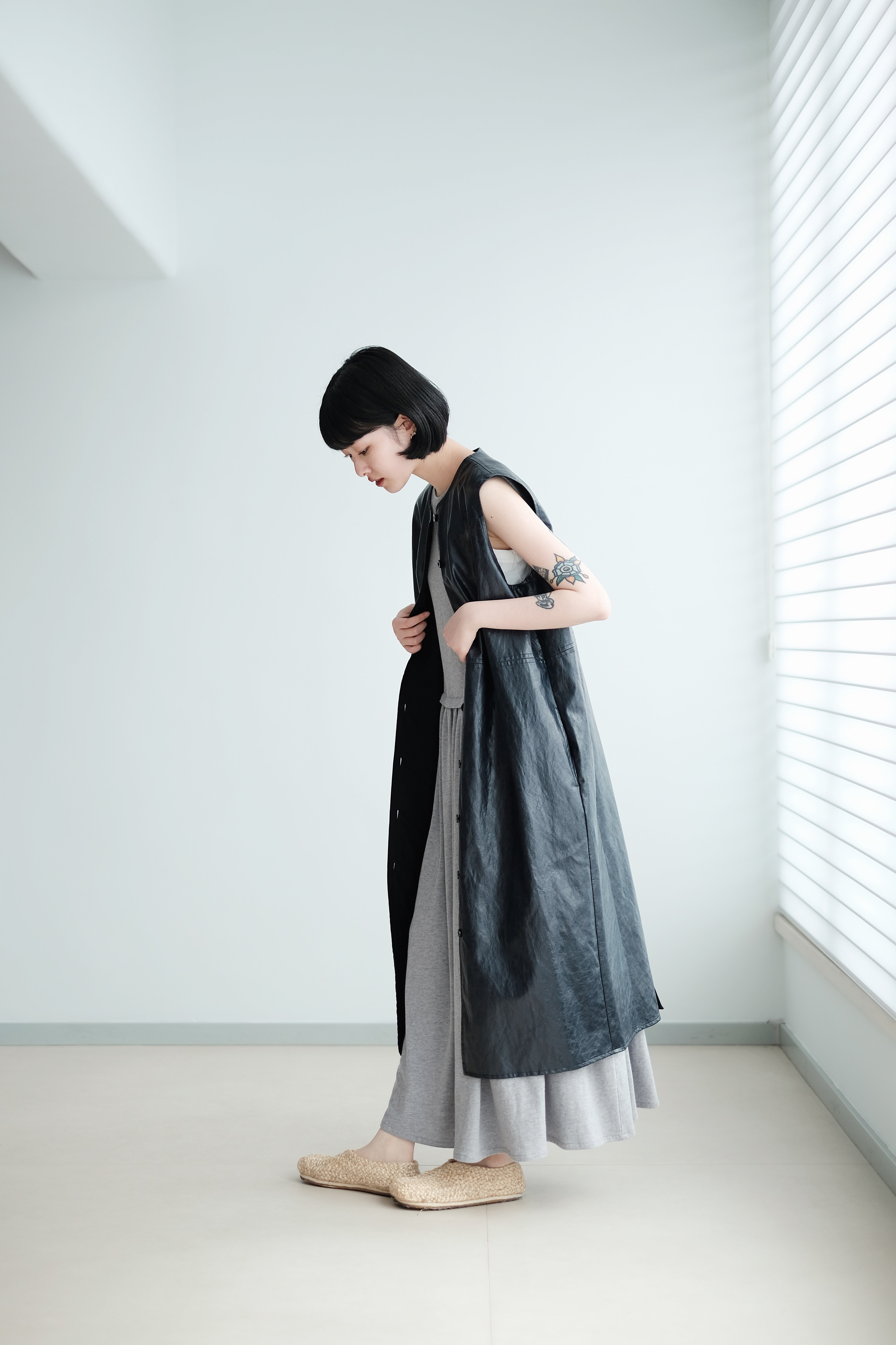 Designed with a relaxed fit, it allows ease of movement while subtly elongating the body line. Whether worn alone or layered over a long-sleeve top, it transitions effortlessly across seasons, making it a refined yet easy everyday piece.