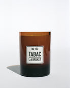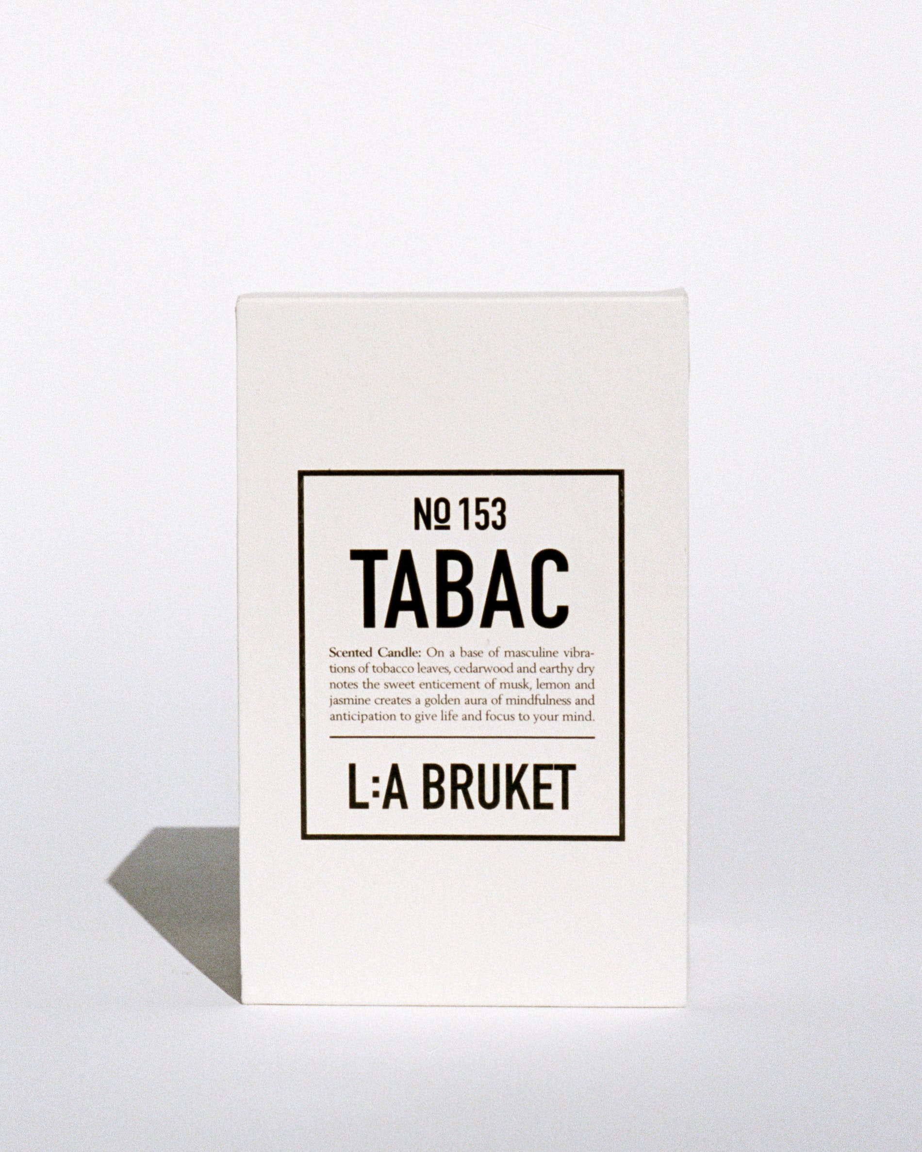 Scented candle made of wax from organic soy with a scent of tabac. The candle is filled by hand in a mouth blown tinted amber glass. The candle has a burn time of more than 45 hours.
