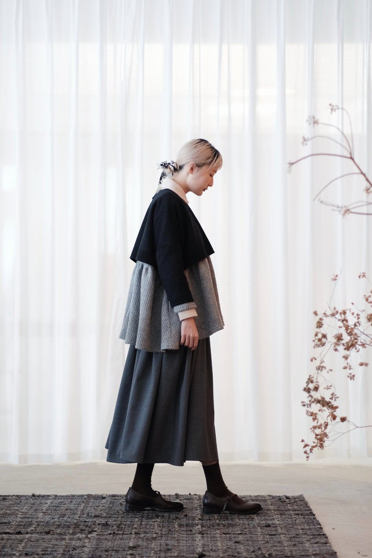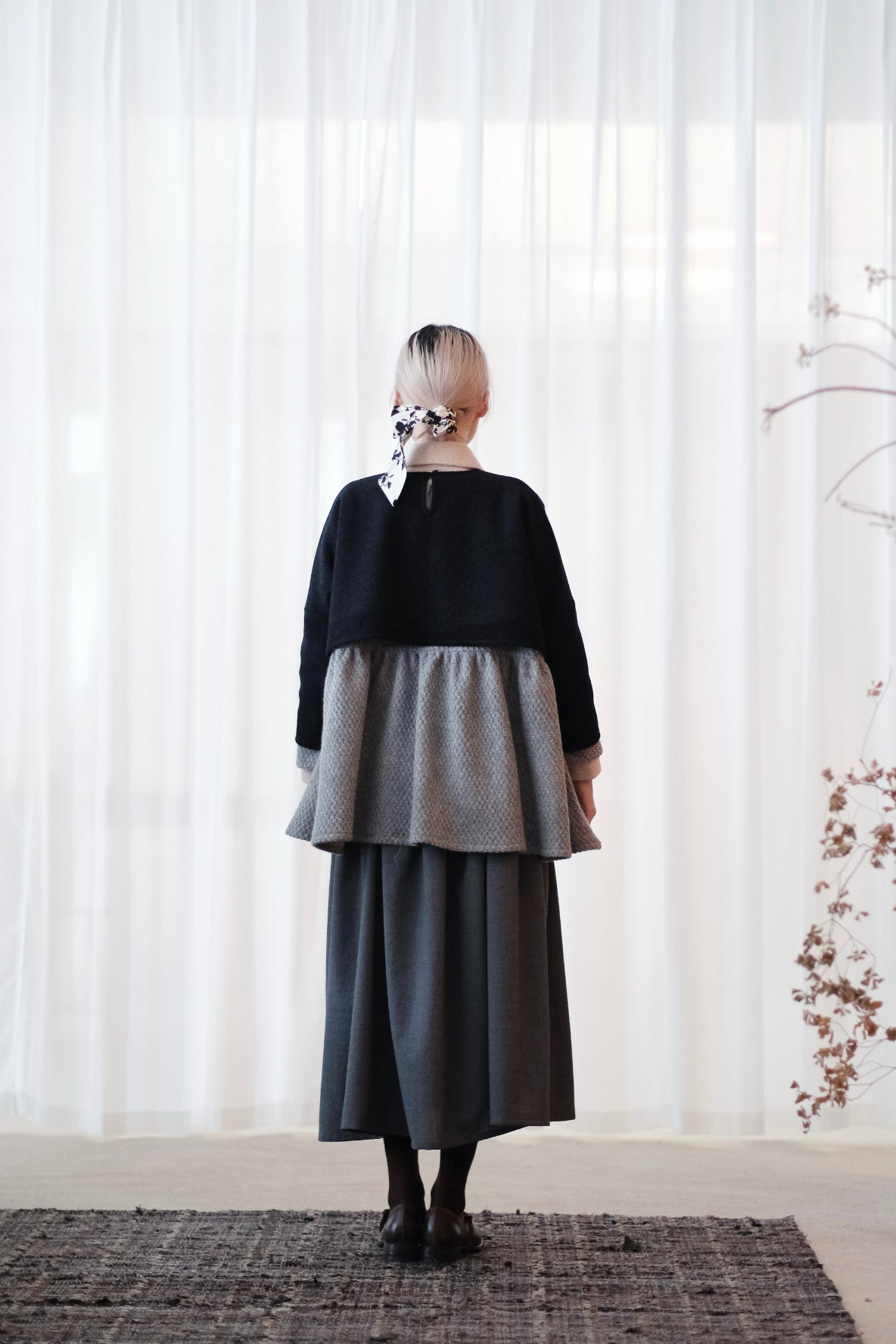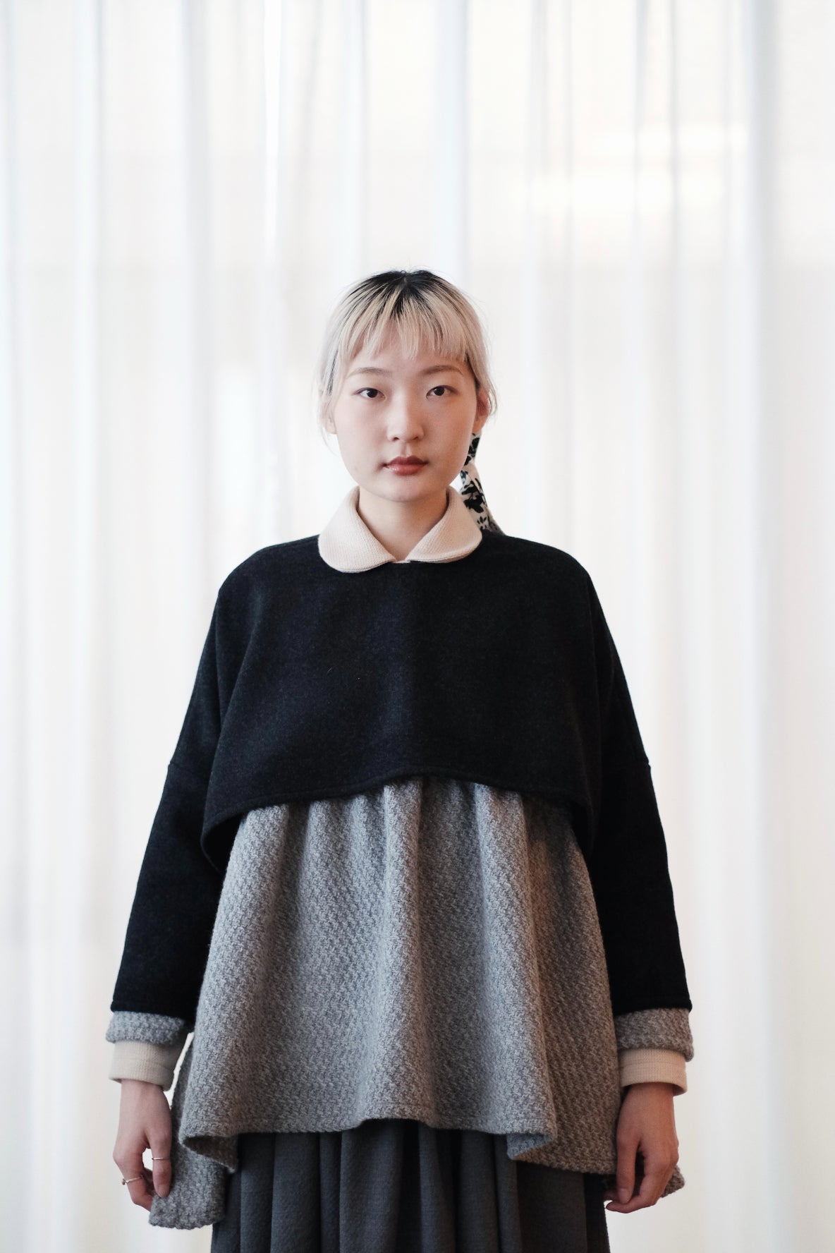 上衣以混合羊毛布料製作