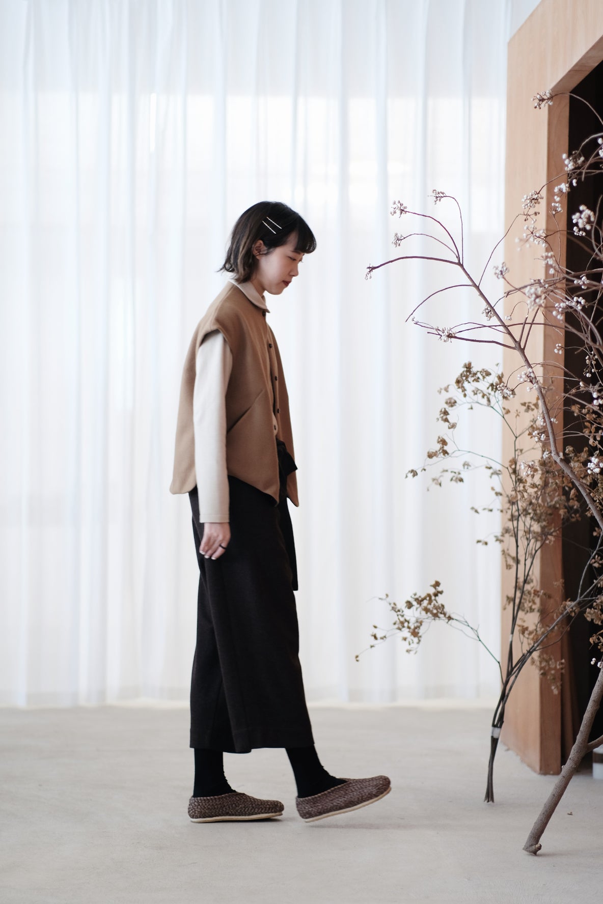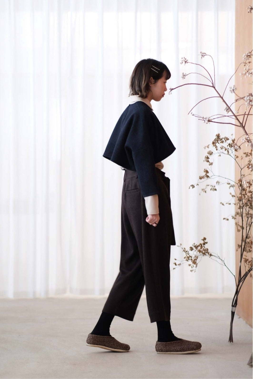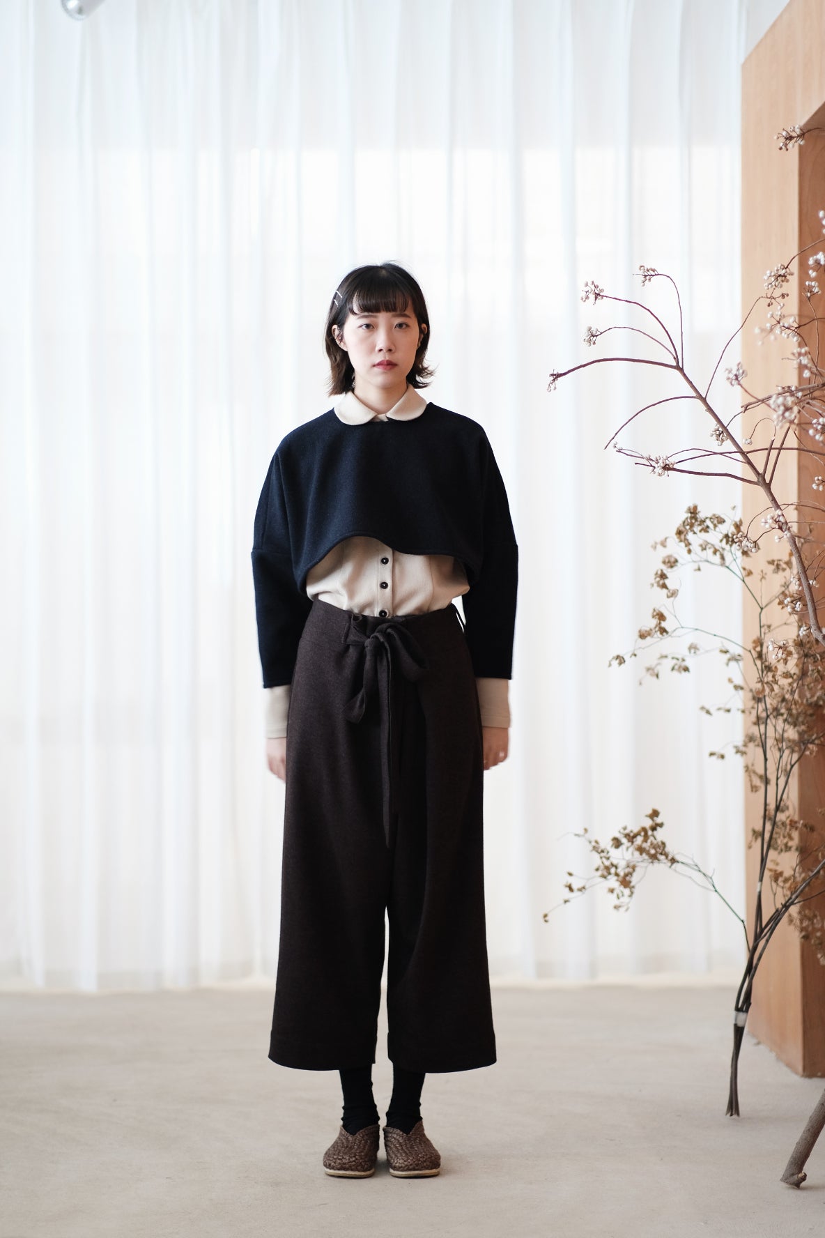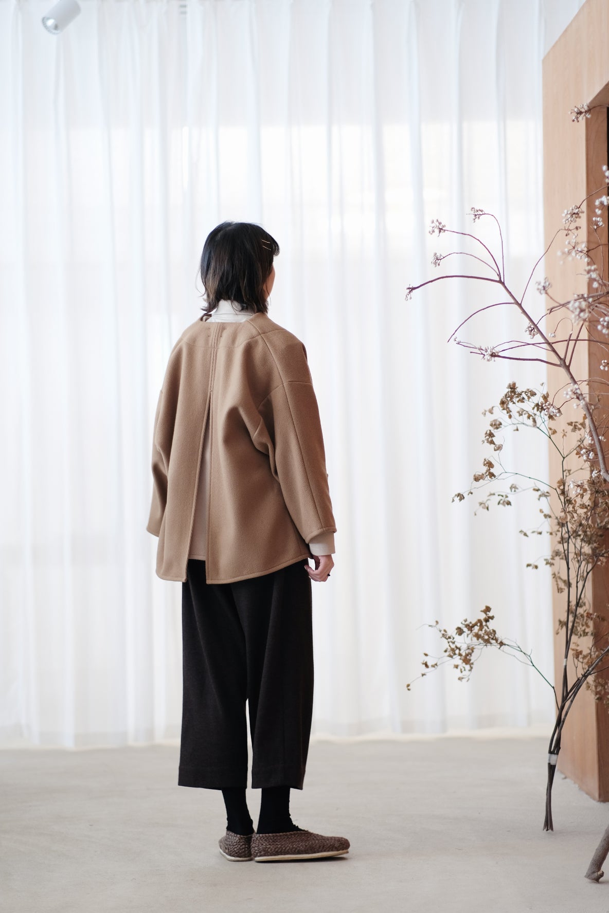 寬闊直筒型剪裁配合羊毛的布料