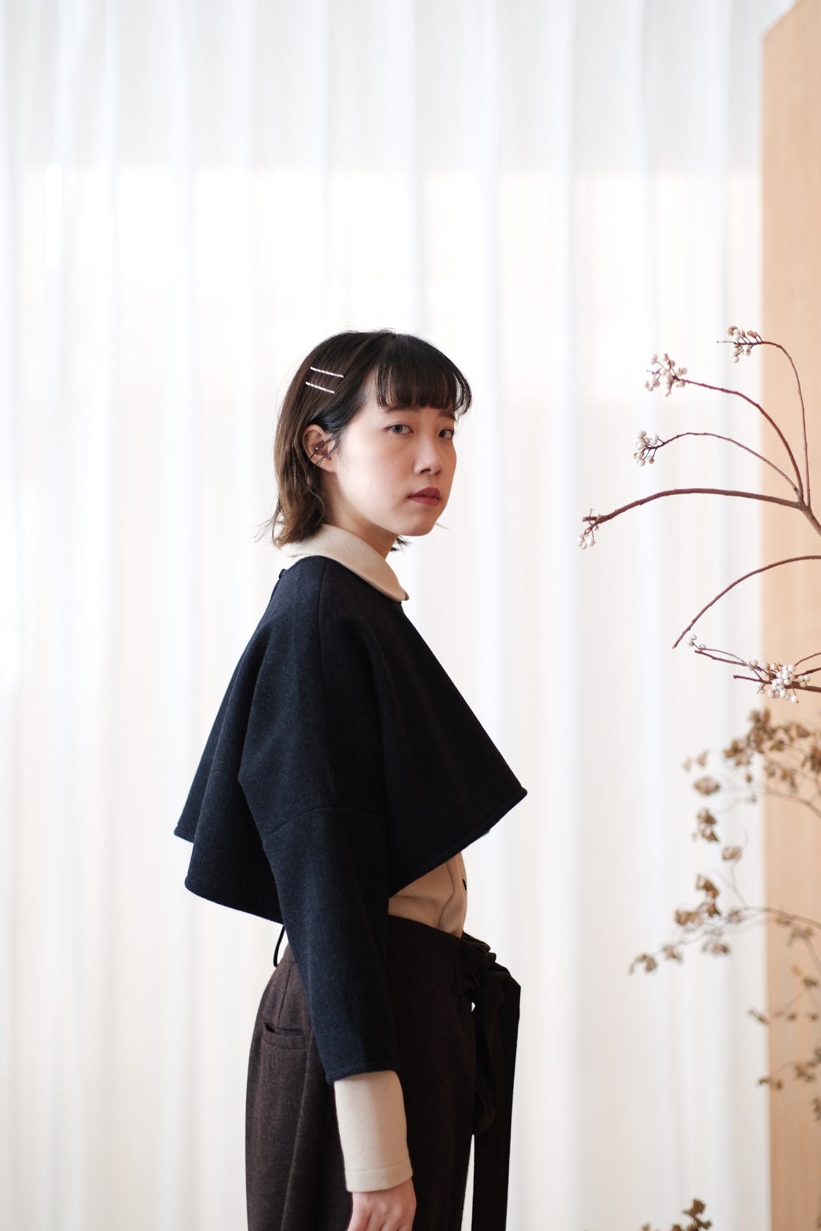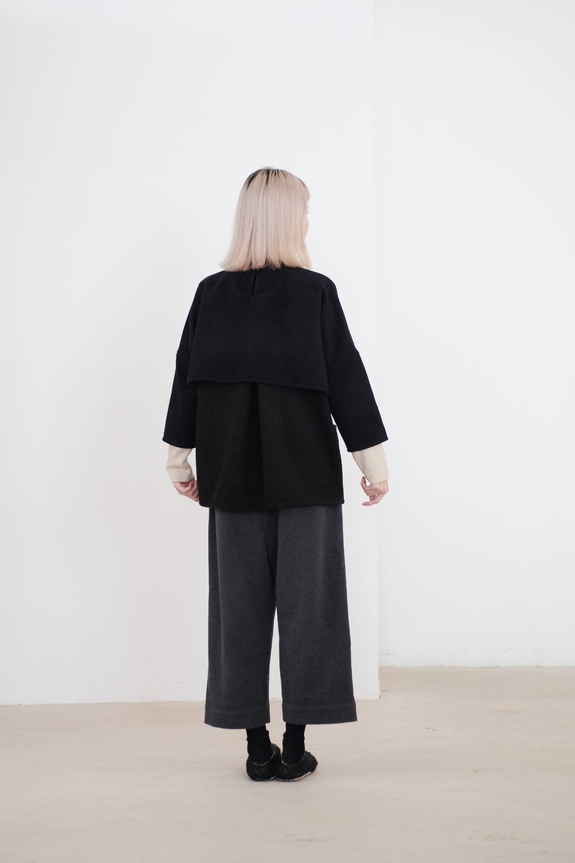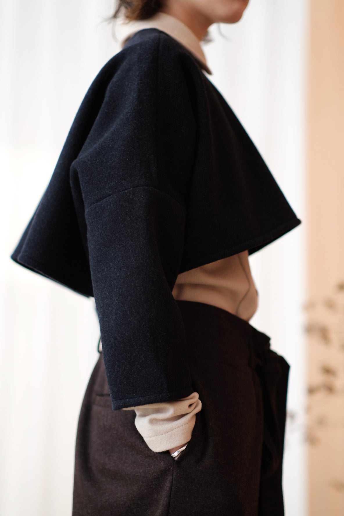 上衣以混合羊毛布料製作