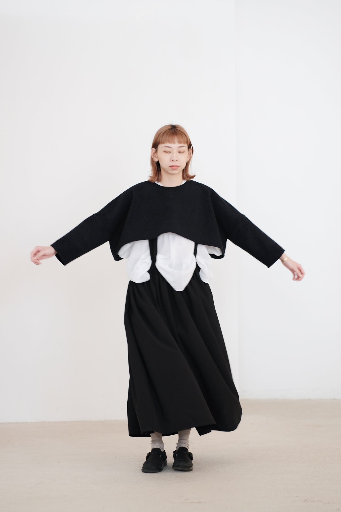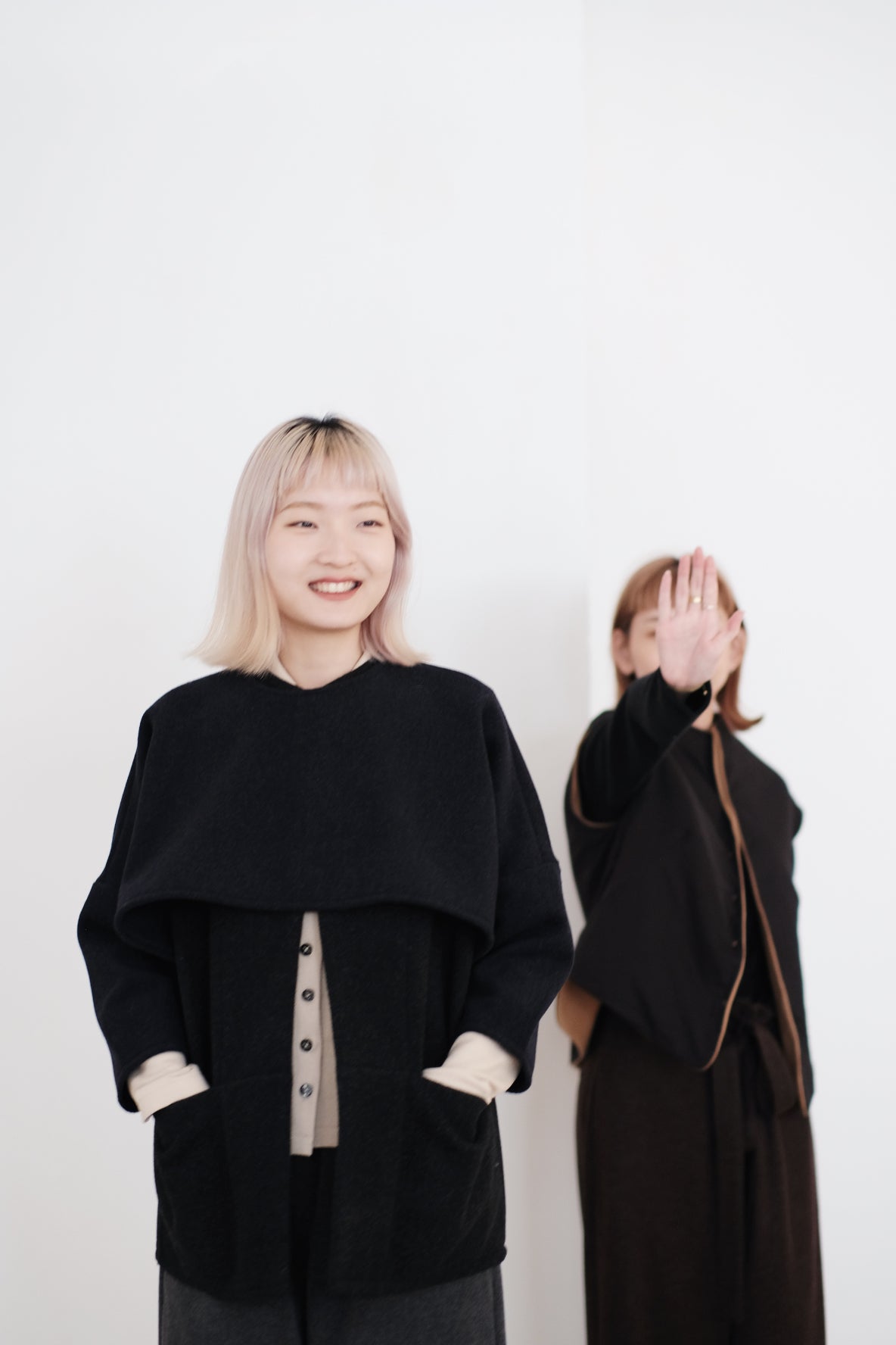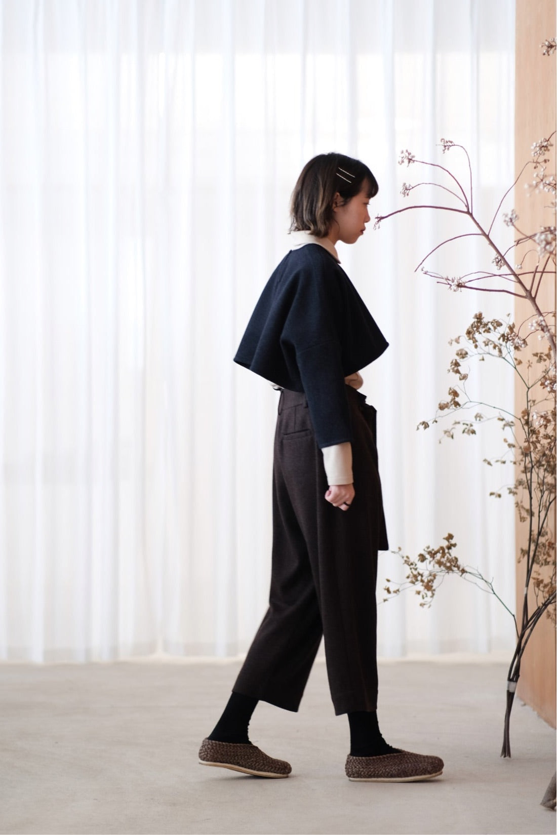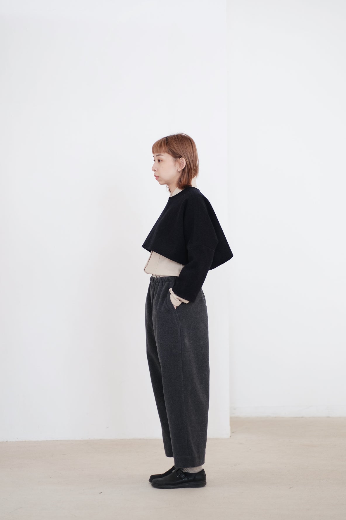 上衣以混合羊毛布料製作