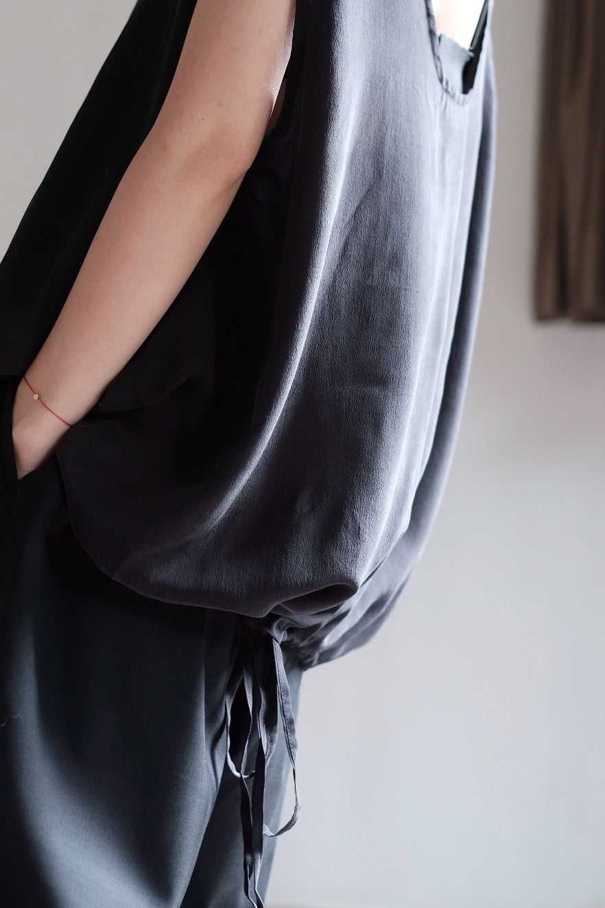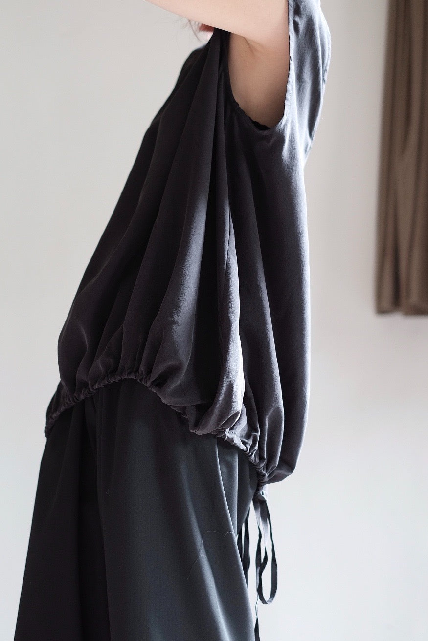深灰色以洗水絲質布料製作 質地輕薄透氣且親膚