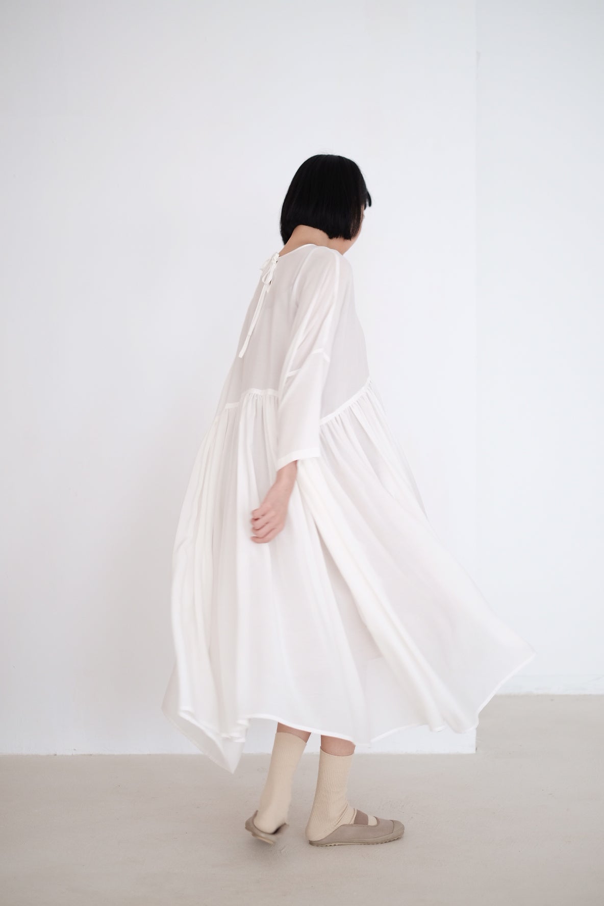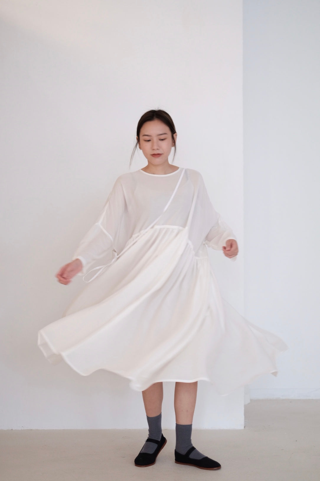 裙子的傘形剪裁和中長寬闊的下擺設計