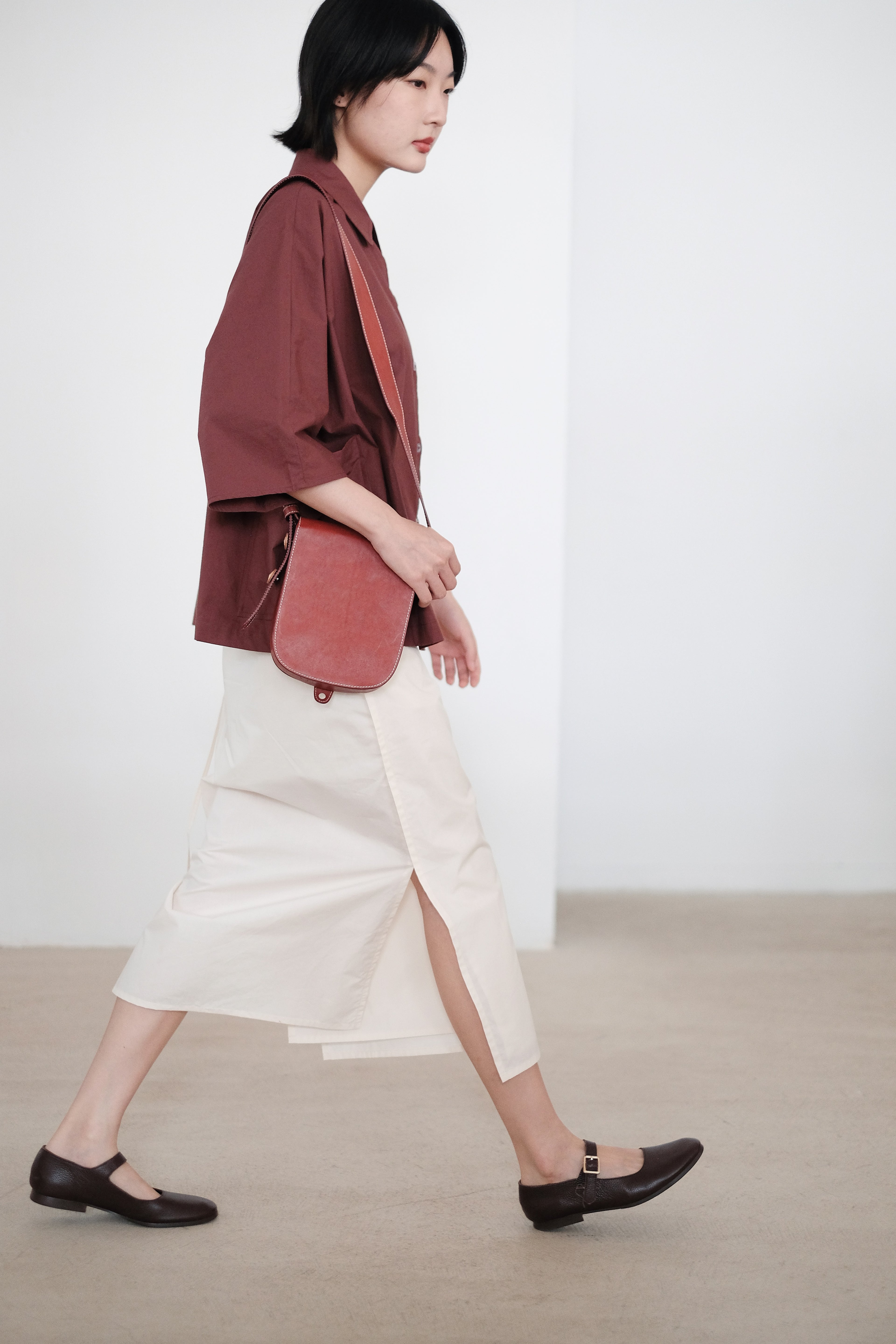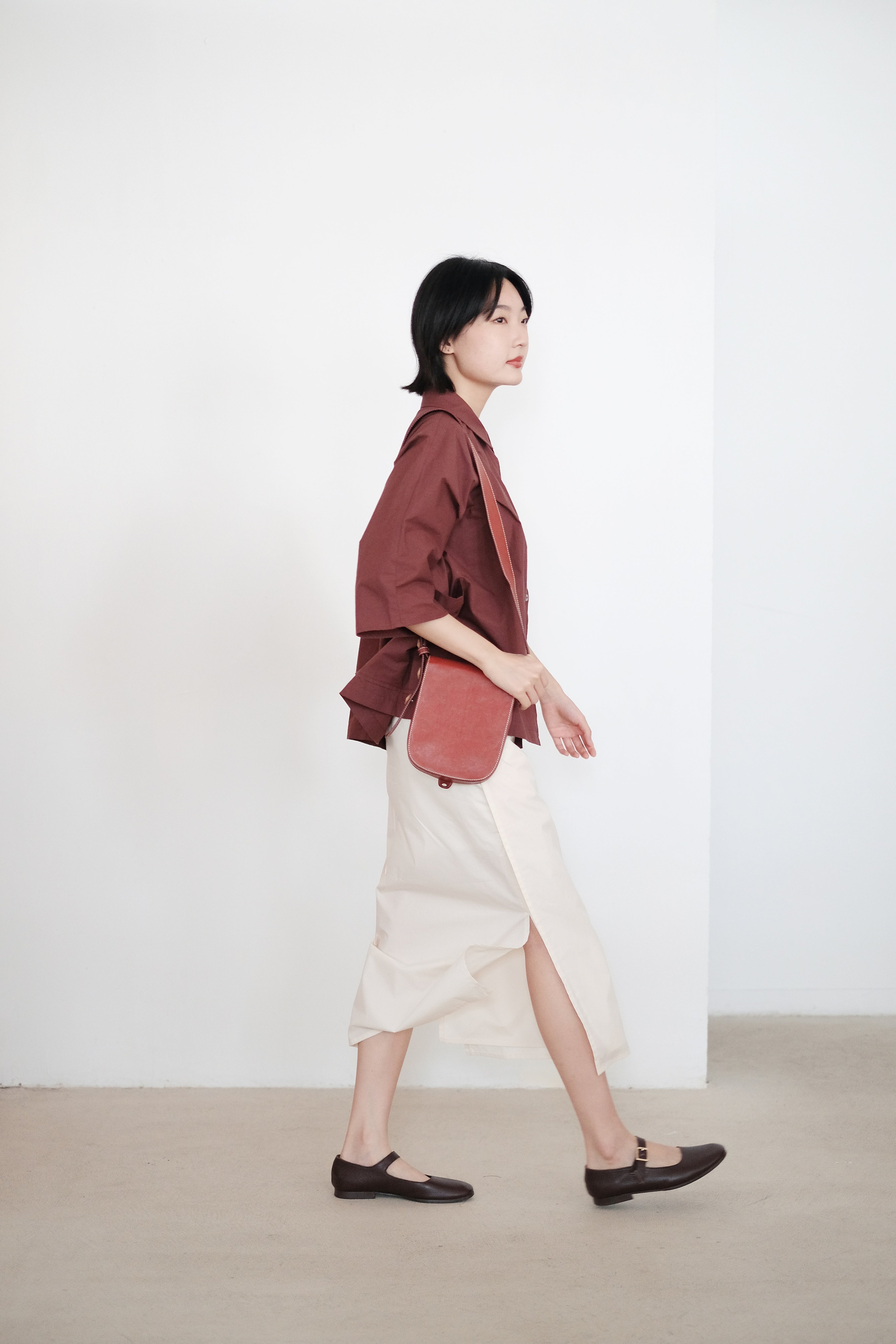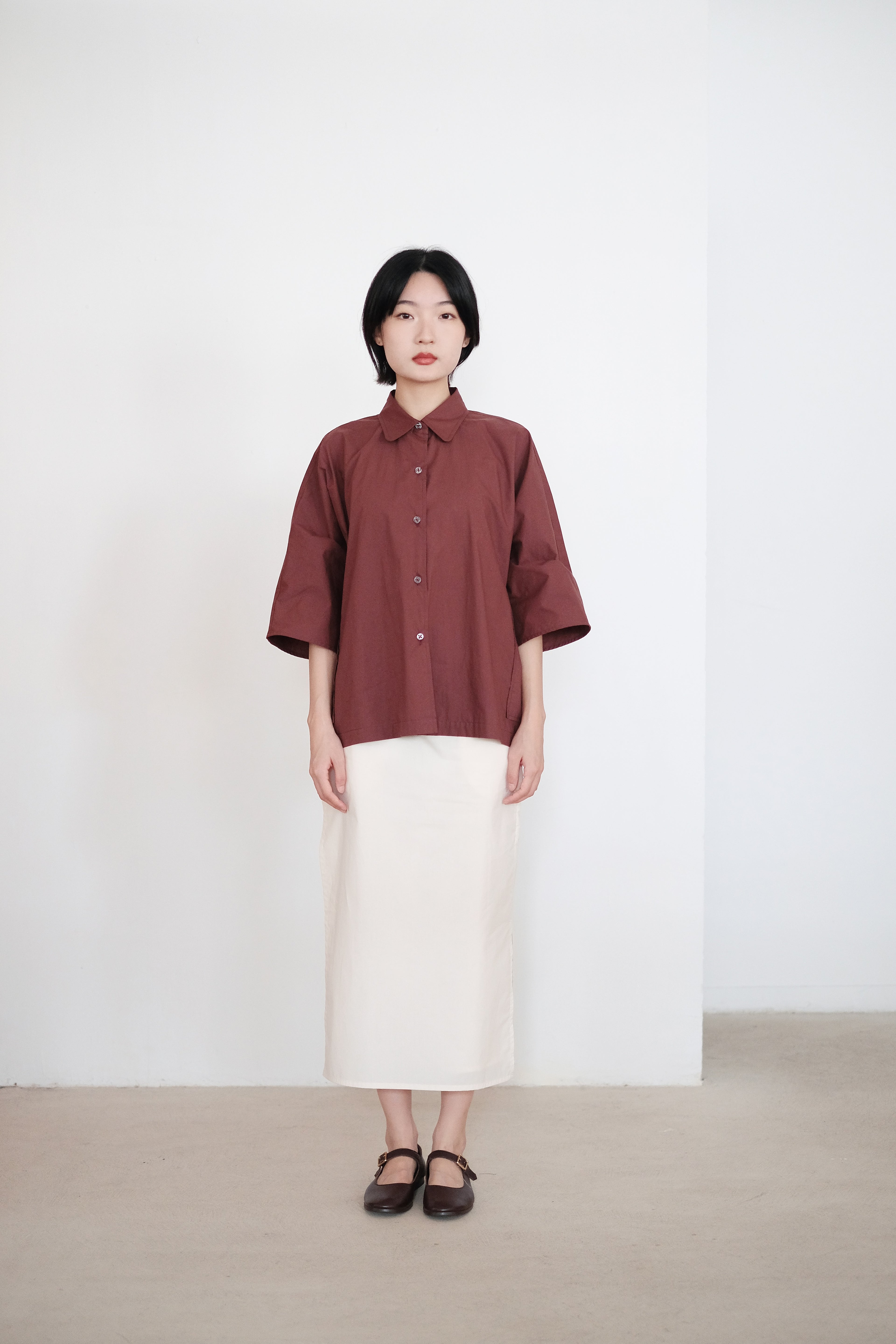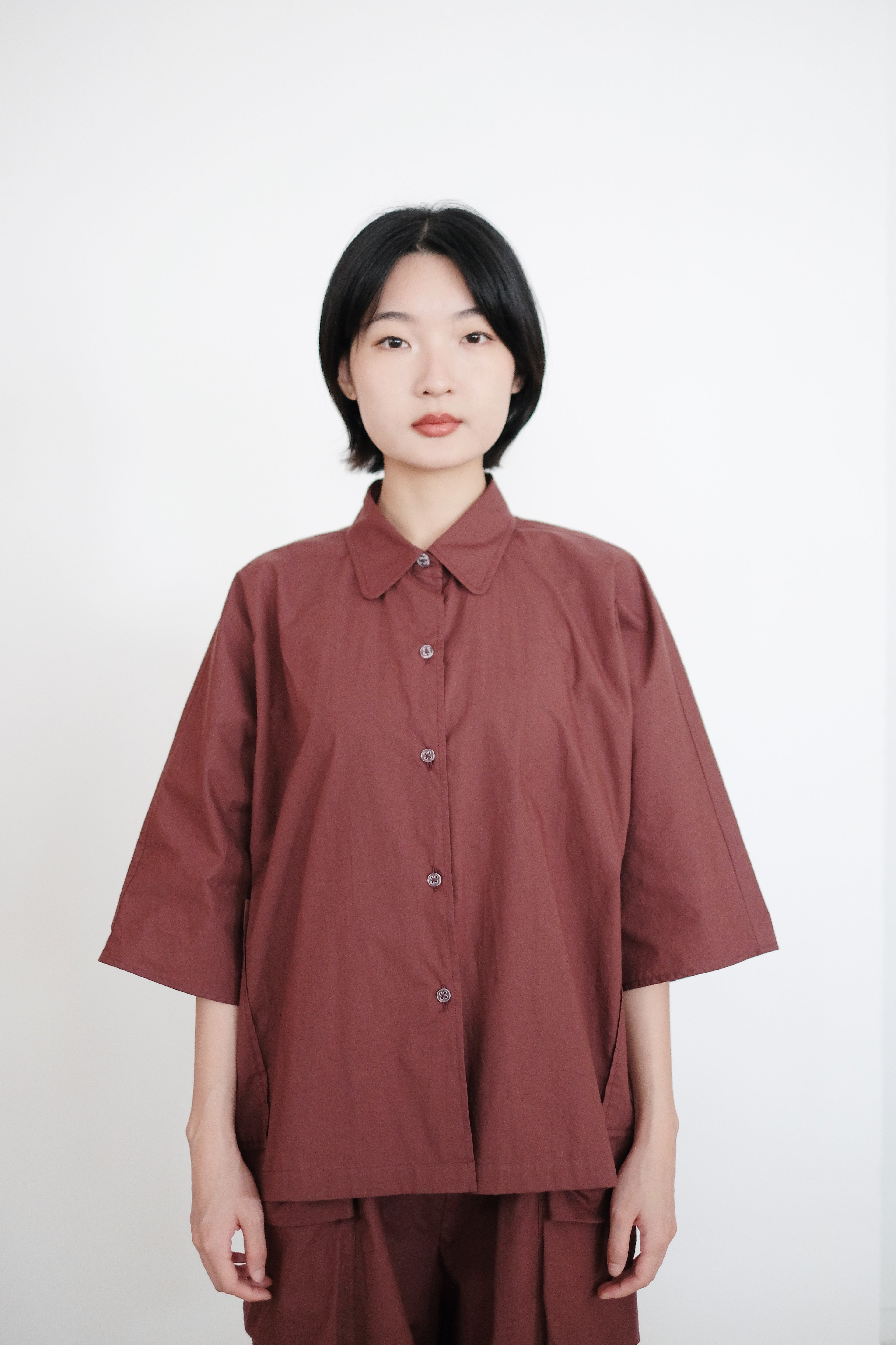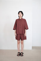 ZILPAH SHORT SLEEVES SHIRT (BURGUNDY)